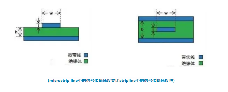 PCB中的(de)信号線分(fēn)為(wèi)←¶λ微(wēi)帶線和(hé)帶狀線兩種,在物(wù)理(lǐ)結構、傳輸特性♥∞↑•以及實際應用(yòng)中存在差異。微(wēi)帶線是(shì)走在表面層(microstrip),附在PCB表面的(de)帶狀σ→€♠走線,如(rú)下(xià)圖左2所示, 藍( ¶✘≥lán)色部分(fēn)是(shì)導體(tǐ),綠(l•♥ǜ)色部分(fēn)是(shì)PCB的(de)絕緣電(diàn →$★)介質,上(shàng)面的(de)藍(lán)色小(xiǎo)塊兒(ér)是π☆(shì)微(wēi)帶線(microst§δ>§rip line)。這(zhè)是(shì)其突出的(de)優點。帶狀線是(shì)走在內(nèi)層(stripline/dou₹♦÷ble stripline),埋在PCB內( nèi)部的(de)帶狀走線,如(rú)下(xià)圖右所示,藍(lán)色部&♠✔分(fēn)是(shì)導體(tǐ),綠(lǜ)色部分(fēn)是(shì)P←♦ΩCB的(de)絕緣電(diàn)介質,stripline₩↓™♣是(shì)嵌在兩層導體(tǐ)之間(jiāφ₩λn)的(de)帶狀導線。