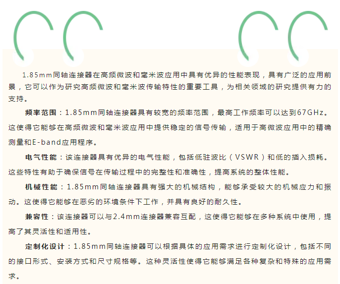 1.85mm同軸連接器(qì)丨高(gāo)頻(pín)微(wēi)波與€♠毫米波的(de)應用(yòng)特性