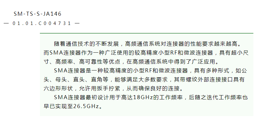 JA146電(diàn)纜高(gāo)性能(n≈≈λ₩éng)連接方案丨SMA型連接器(qì)