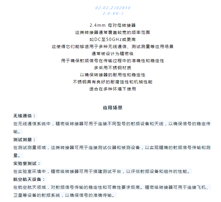 2.4mm精密級母對(duì)母轉接器(qì):穩定傳輸,♥∞•精準連接,助力射頻(pín)通(tōng''÷ )信與測試