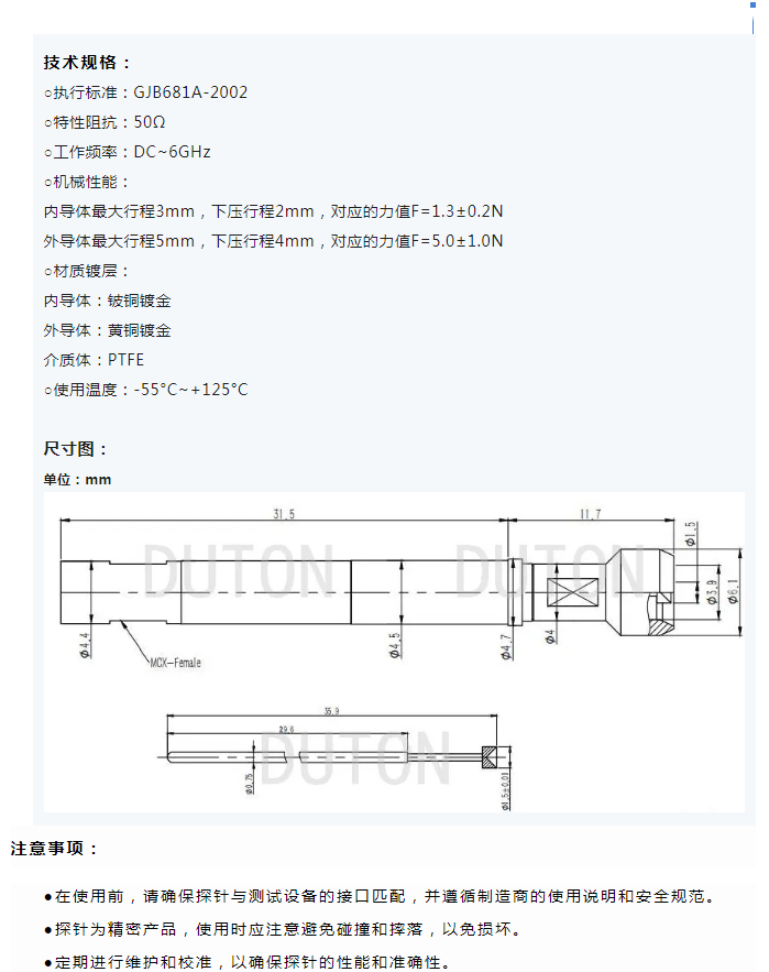MP160-MF422:高(gāo)頻(pín)、長(cháng)款、耐用(yεòng)的(de)MCX接口汽車(chē)探針