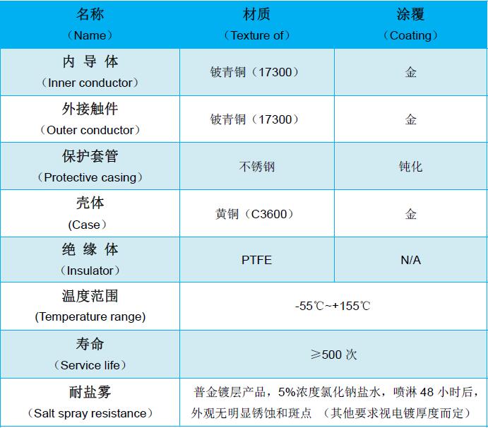 ML51射頻(pín)連接器(qì)1.工(gōng)作(zuò)頻(pín)率高(gā♣ o) (High working fre$σ✔quency)2.測試壽命長(cháng) (Long test life)3.駐波及損耗低(dī) (Standi×αλ←ng wave and low loss) &♠✔'nbsp;  >γΩ★; 點擊下(xià)載規格書(shū)電(diàn)氣性能(néng):機(jī)械性能(néng):外(wài)觀尺寸: